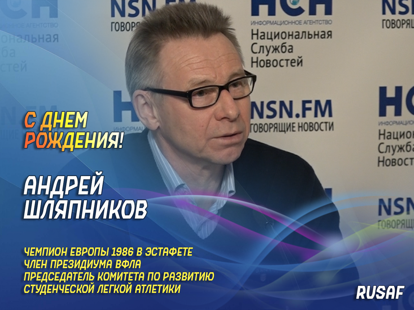 Сегодня, 13 января, юбилей дня рождения отмечает член президиума Всероссийской федерации легкой атлетики, председатель комитета по развитию студенческой легкой атлетики, мастер спорта международного класса СССР Андрей Шляпников.