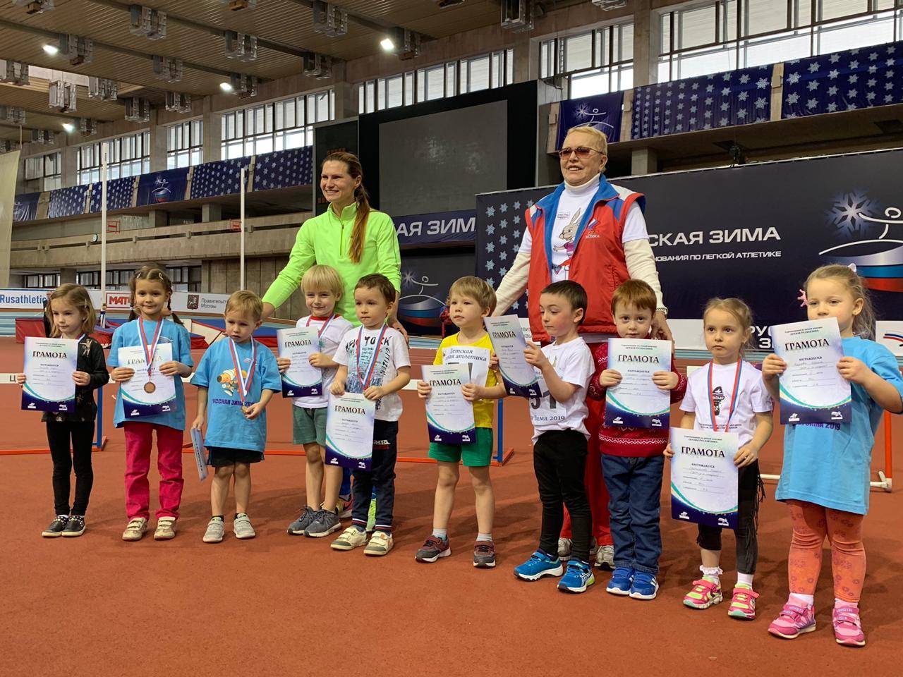 “Детская Русская зима” – соревнования для детей от 3 до 10 лет в легкоатлетическом многоборье, которое включает бег на 60 м и 60 м с барьерами. Официально соревнования проводятся для детей в возрасте трех лет, но частенько бывшие спортсмены приходят на соревнования с совсем маленькими детками. Ребенок выходит на дорожку и бежит, помешать ему, рвущемуся в мир легкой атлетики, конечно, никто из организаторов не в праве. Так получилось и сегодня, год рождения самых юных участников, которых было трое – 2017. Только один из них дотерпел до финиша и закончил соревнования, имя самого юного победителя “Детской Русской зимы”-2019Владислав Куклеев.