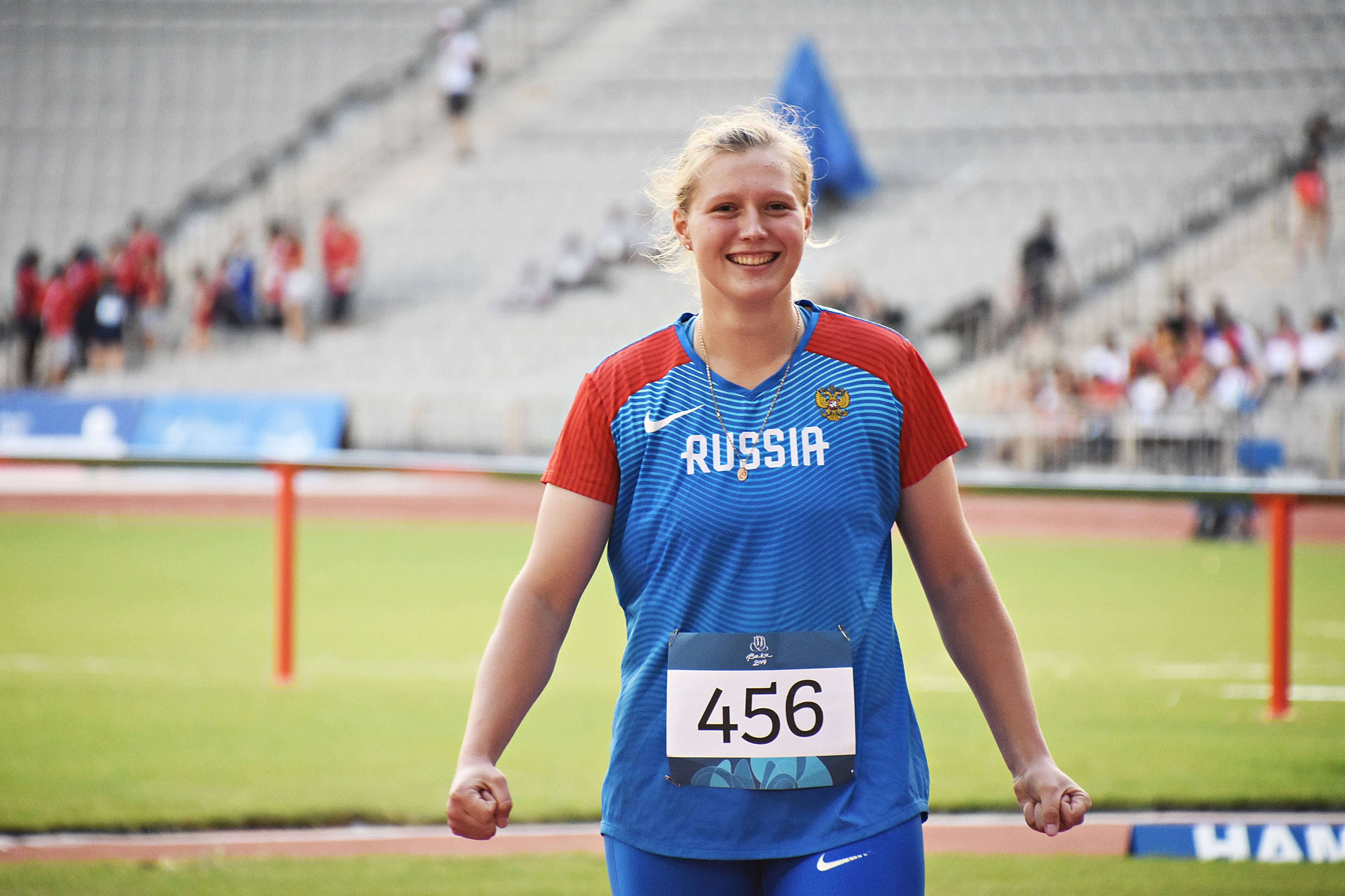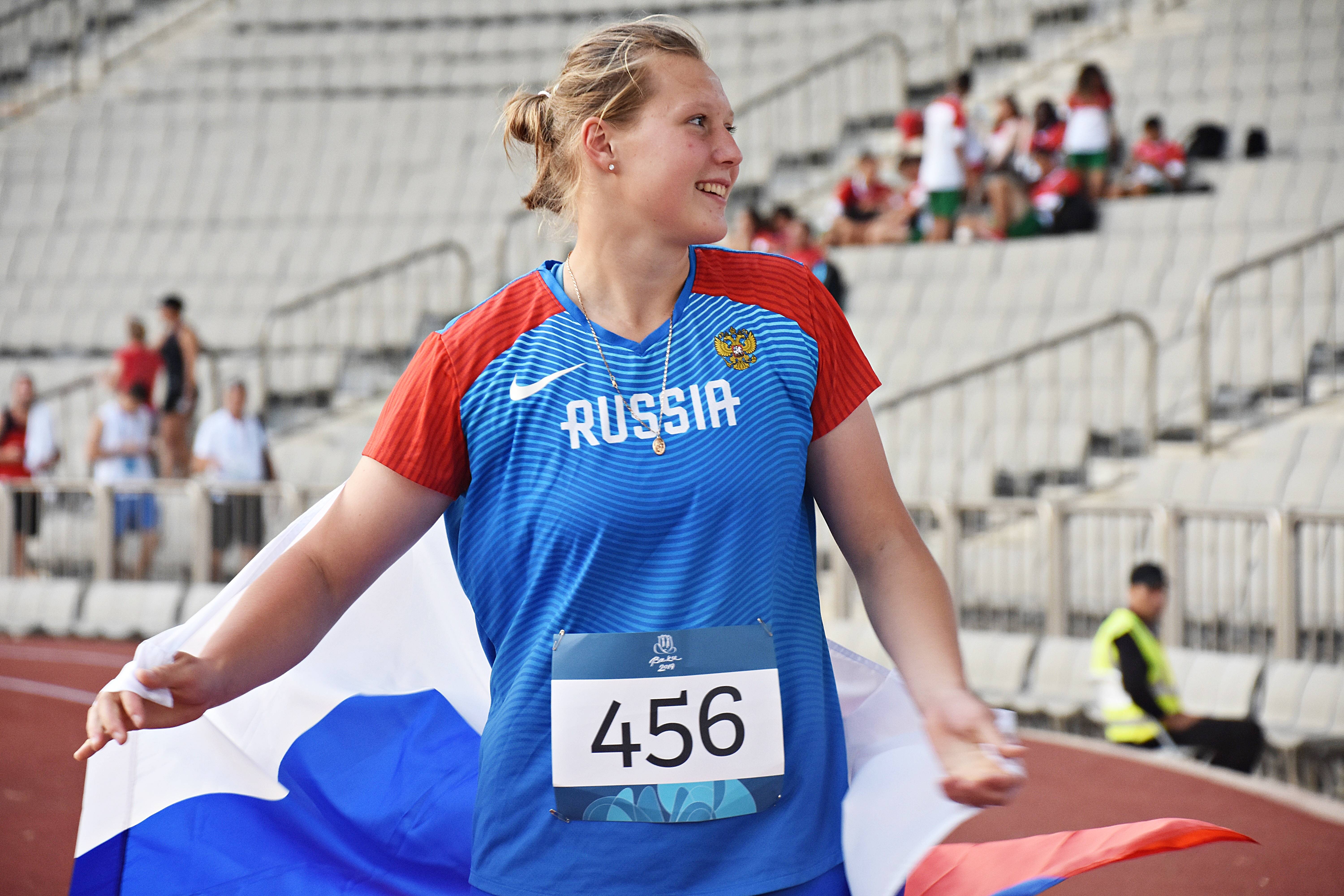 В метании диска золотой почин Олеси подхватила Виолетта Игнатьева, которая в лучшей попытке отправила снаряд на 55.37 м. Отметим, что Виолетта не только завоевала заветную золотую медаль фестиваля, но и установила сегодня рекорд Европейских юношеских Олимпийских фестивалей. Поздравляем Виолетту и ее тренера и отца Олега Игнатьева!