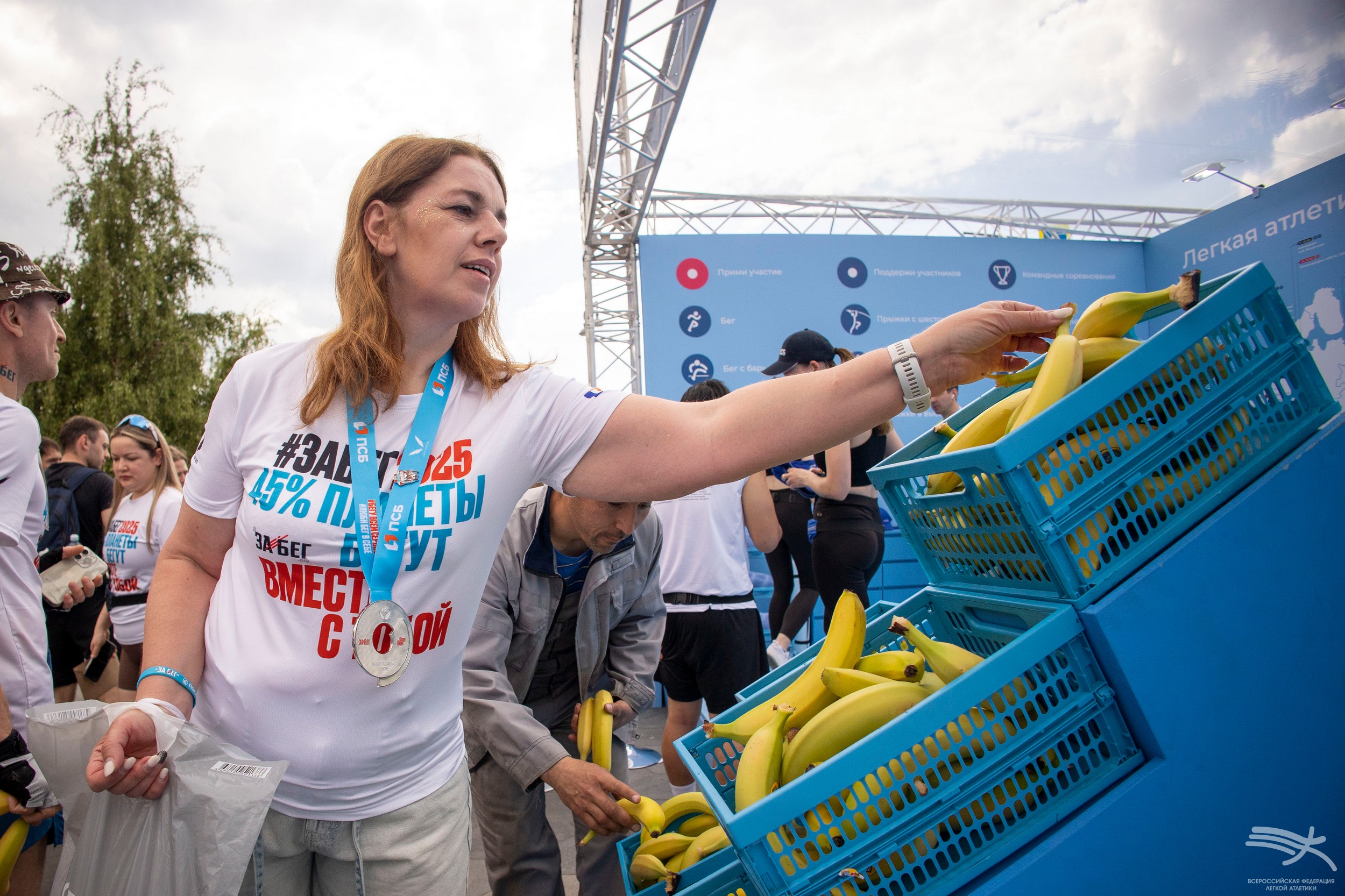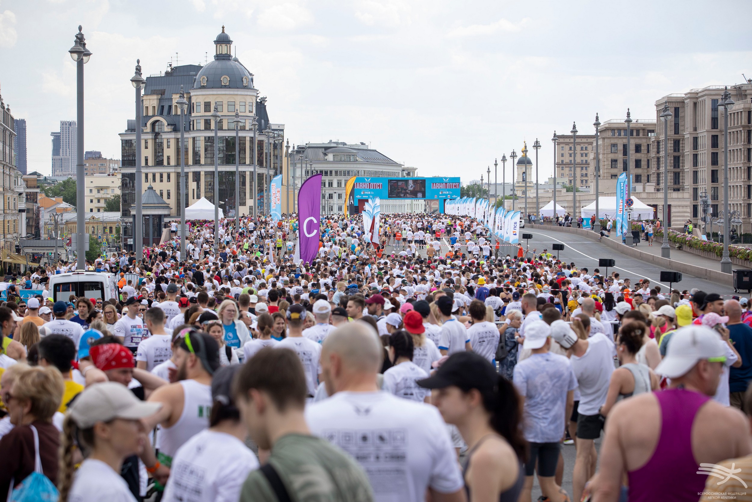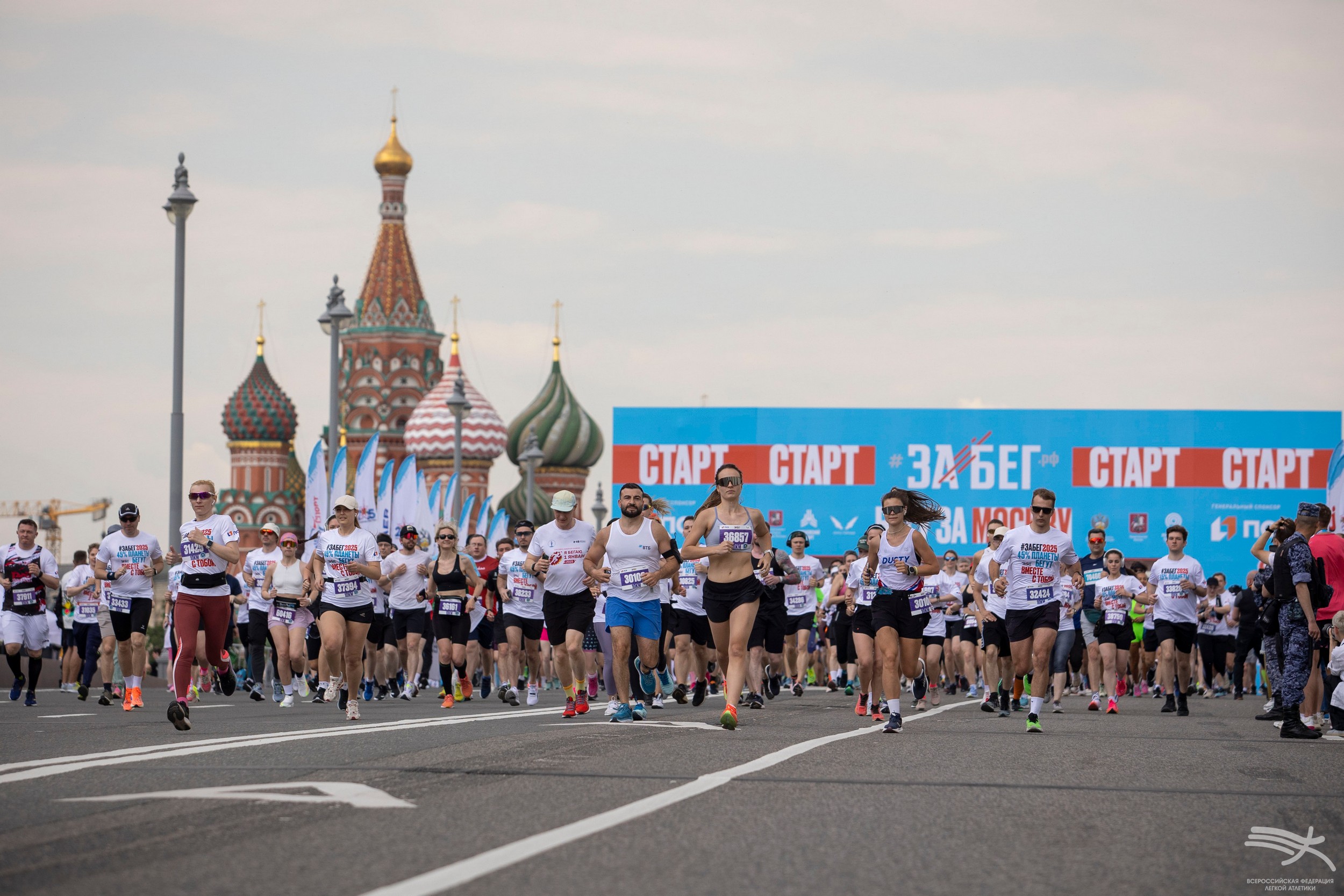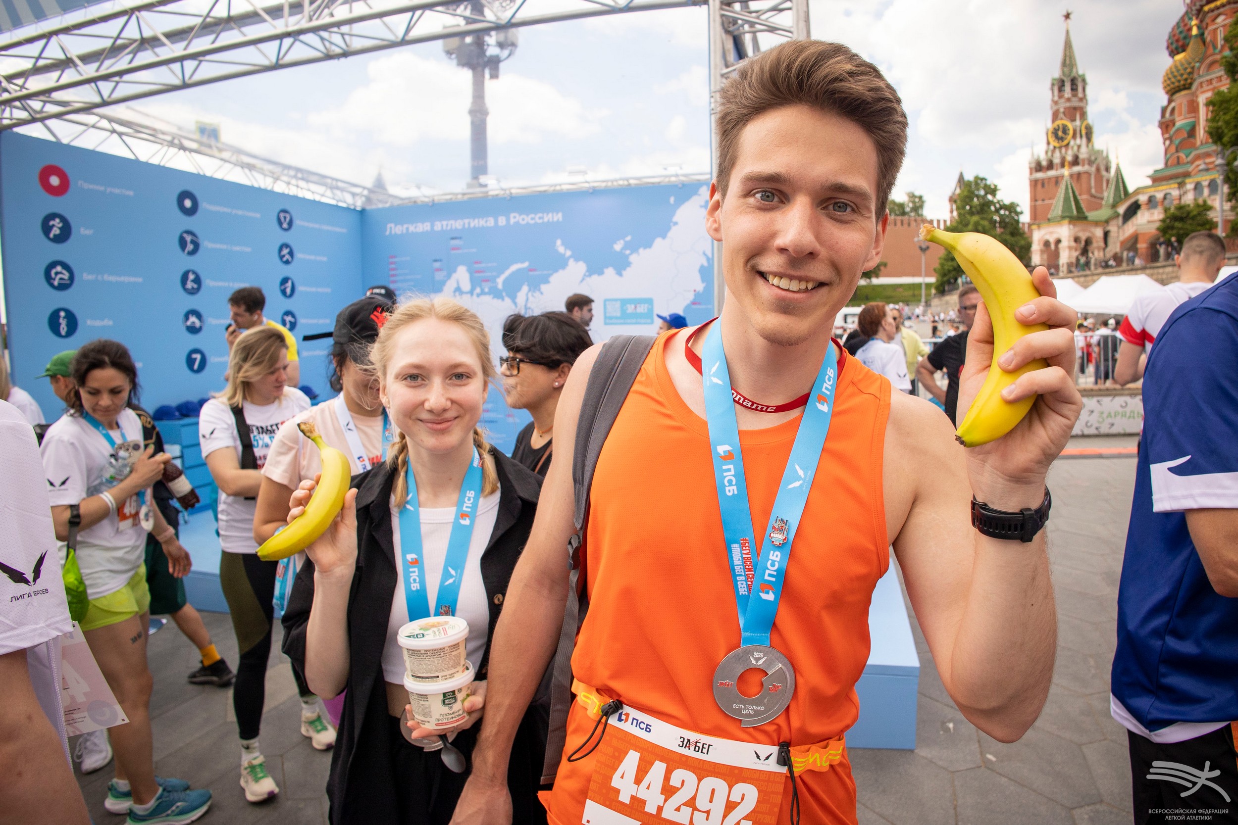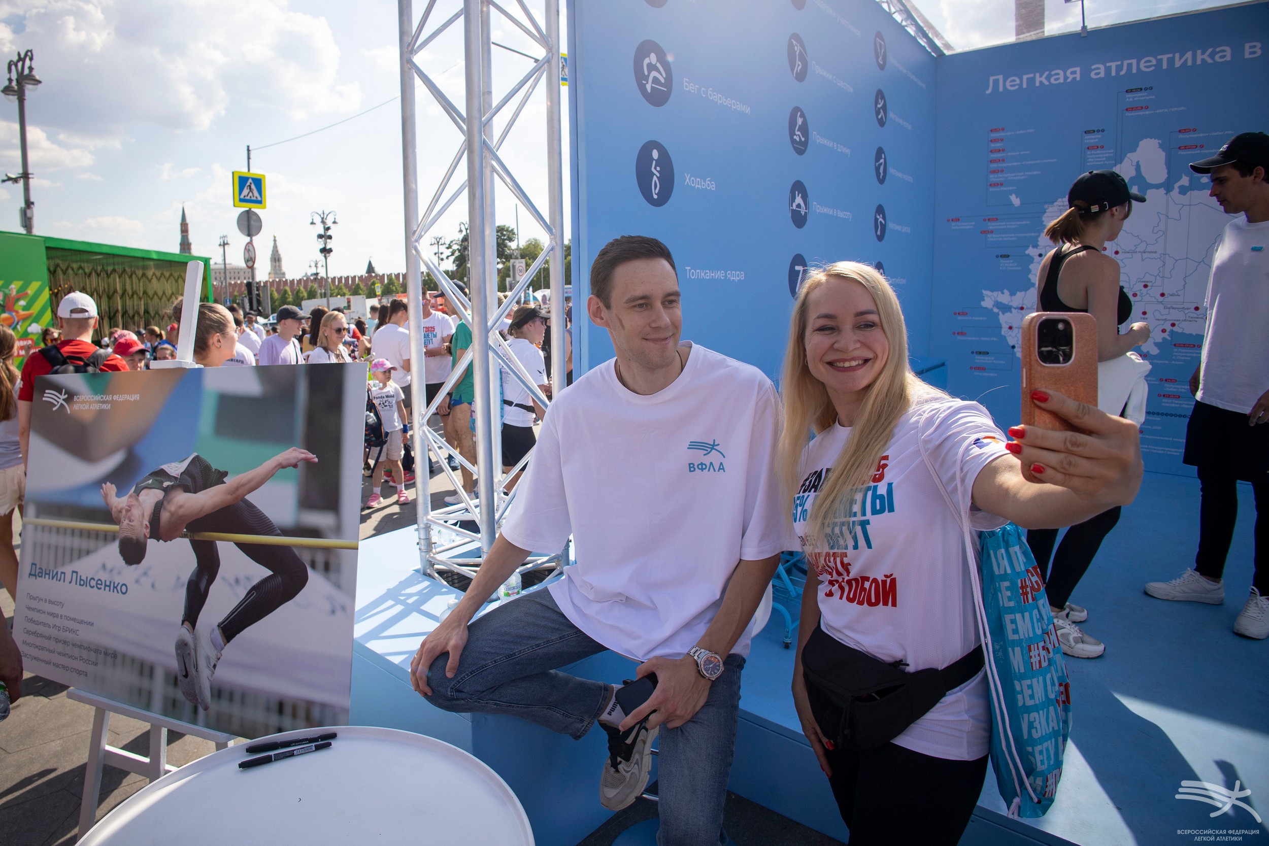 В Москве ВФЛА организовала стенд в фан-зоне, расположенной в парке Зарядье, где мы приготовили для любителей бега много интересного! С большим интересом публики прошла автограф-сессия чемпиона мира в помещении в прыжке в высоту Данила Лысенко и чемпионки Европы среди юниорок в прыжке с шестом Аксаны Гатауллиной. Также посетители фан-зоны могли воспользоваться нашей фотозоной и сделать на память яркие снимки, получить бесплатное профессиональное тейпирование, подарки с символикой ВФЛА и подкрепиться после финиша бананами – в этот день мы раздали 750 кг питательных фруктов!