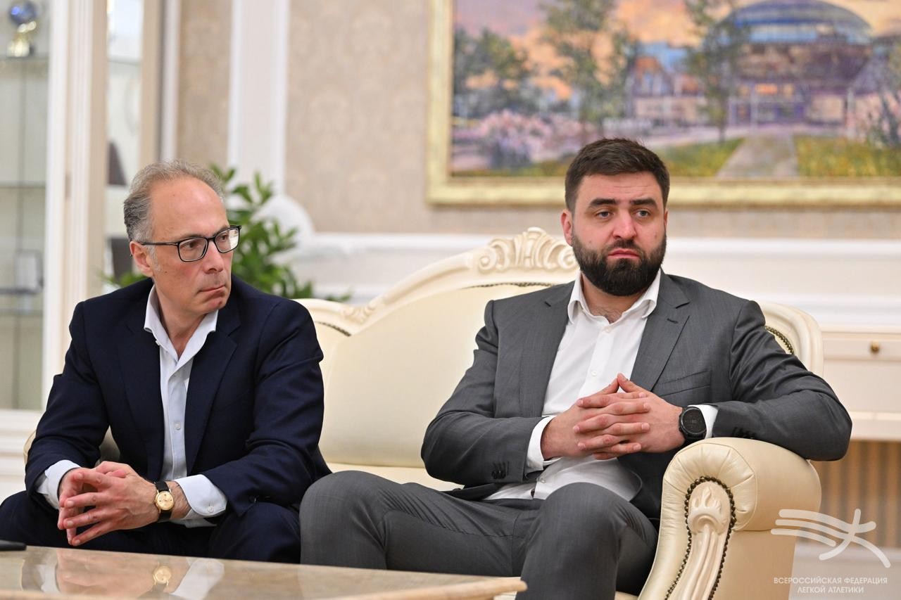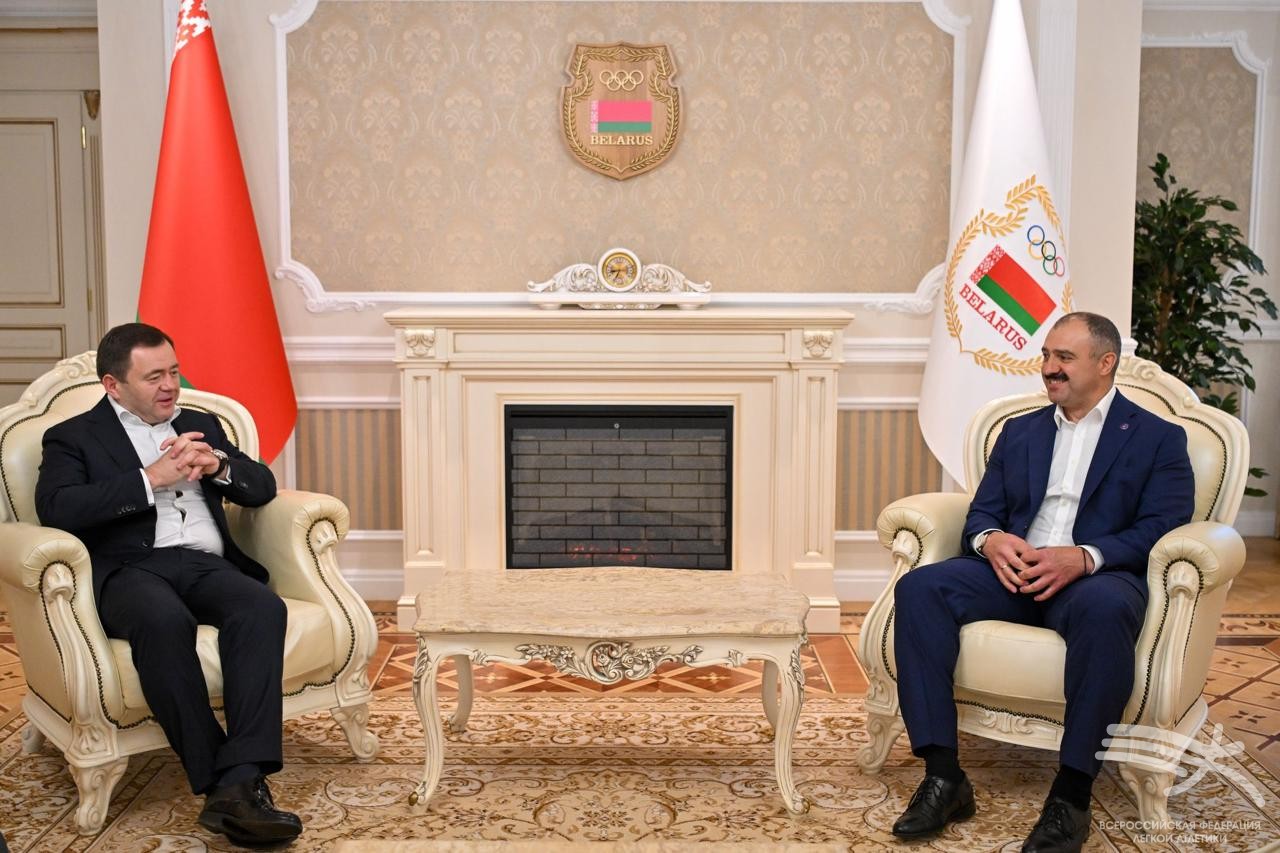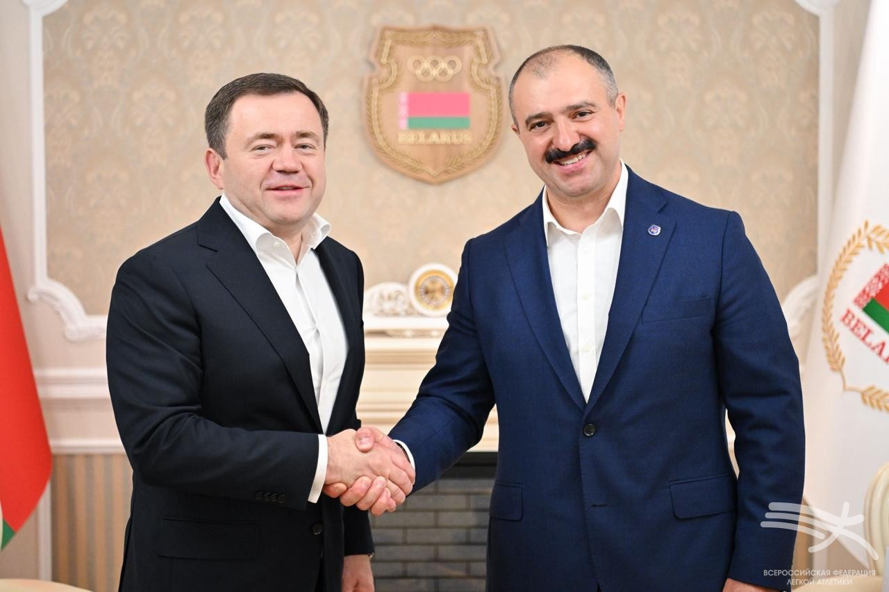 В Национальном олимпийском комитете Республики Беларусь состоялась рабочая встреча вице-президента ОКР, председателя ВФЛА, главы ПСБ Петра Фрадкова с президентом НОК Беларуси Виктором Лукашенко.